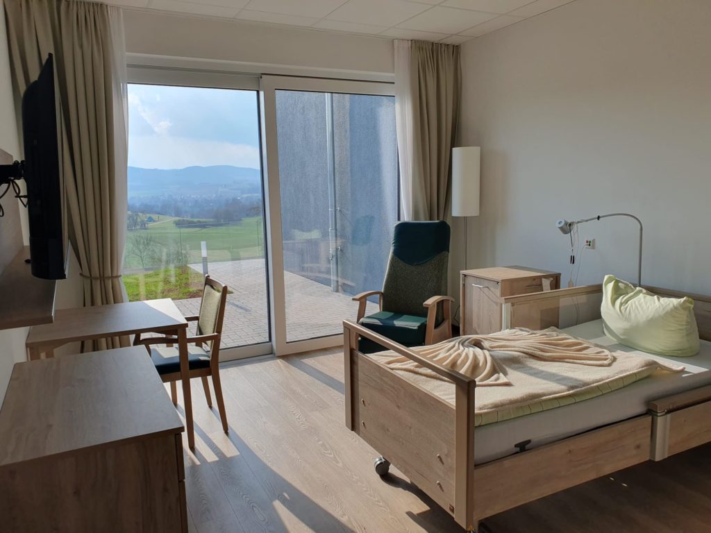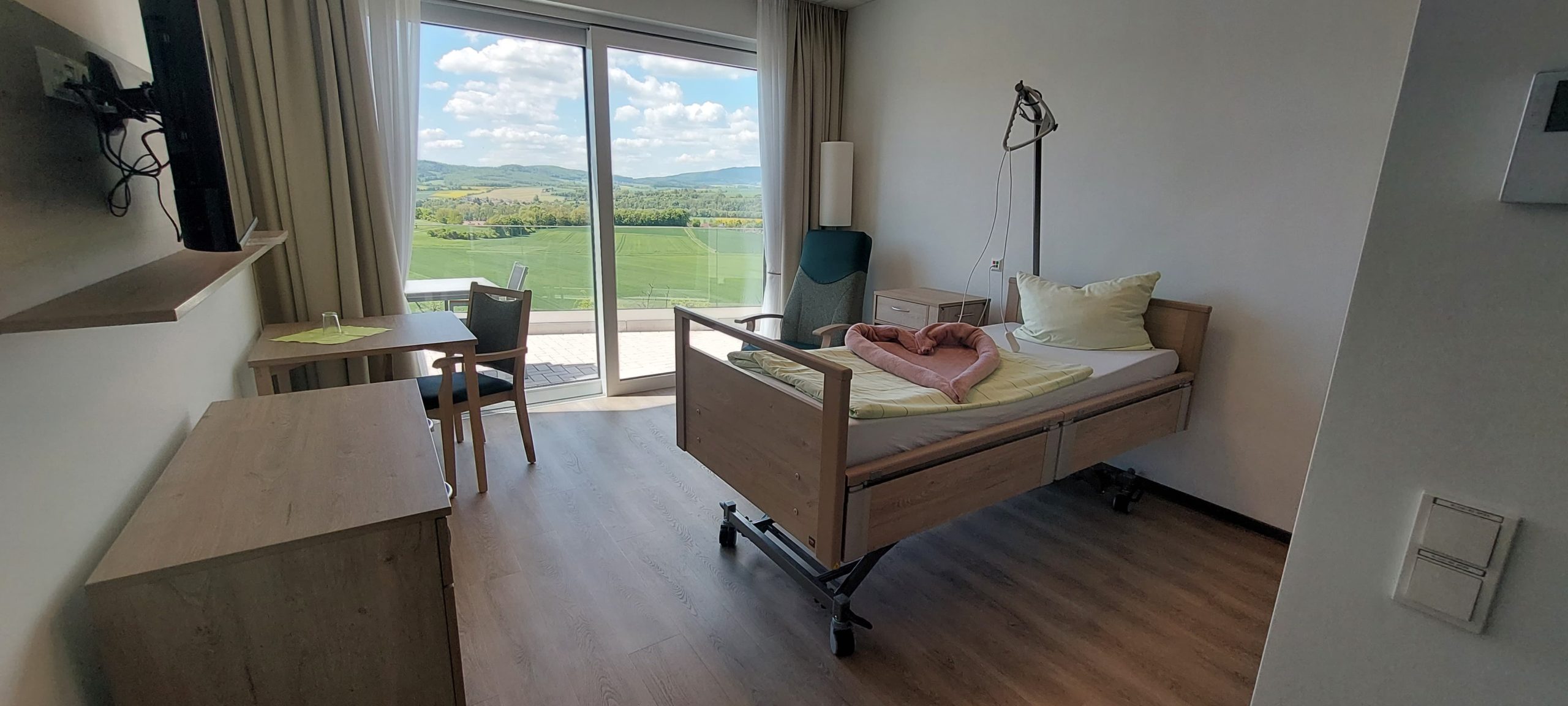 Eingebettet in die Natur der nordhessischen Landschaft hat das Hospiz Meißnerblick einen wunderschönen Ausblick auf den Hohen Meißner. Vom Bett aus sieht man Felder, Wiesen, vorbeifliegende Vögel – der Ausblick lädt zum Träumen ein.
