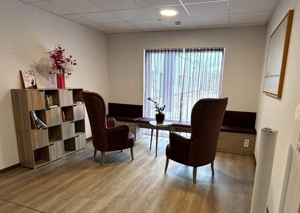 Der Raum der Stille ist ein Ort der Besinnung und eignet sich für Gebet und Meditation. In einer der beiden Leseecken kann man sich gemütlich mit einem Buch zurückziehen.